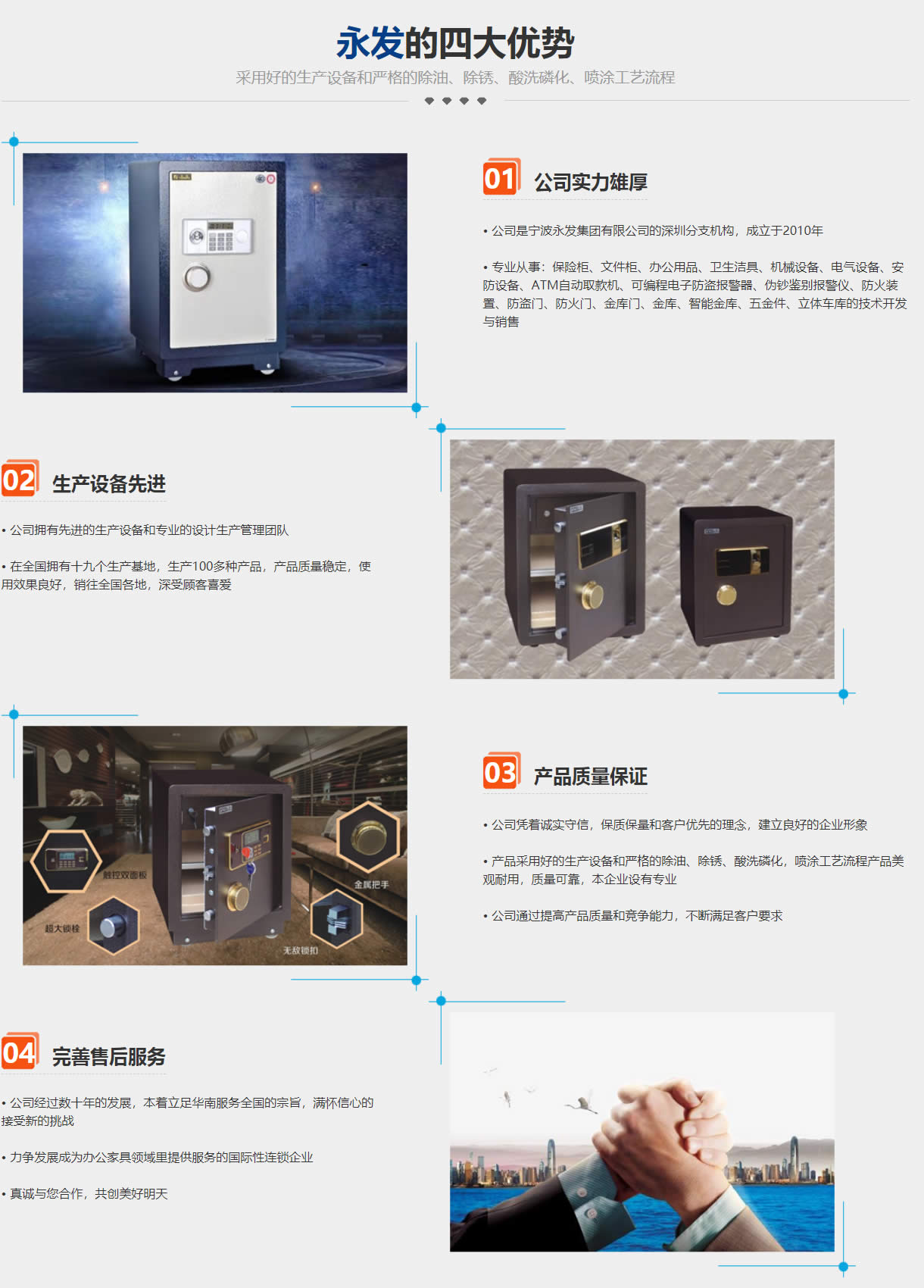 深圳永發安防產品有限公司 深圳永發安防產品有限公司,是寧波永發集團有限公司的深圳分支機構,成立于2010年,專業從事:保險柜、文件柜、辦公用品、衛生潔具、機械設備、電氣設備、安防設備、ATM自動取款機、可編程電子防盜報警器、偽鈔鑒別報警儀、防火裝置、防盜門、防火門、金庫門、金庫、智能金庫、五金件、立體車庫的技術開發與銷售。